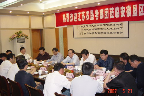 5月21日,江苏省农垦集团公司一行12人考察团在总经理任建新的带领下,到安徽垦区交流考察农业统分结合、提高组织化程度和产业化水平,发展高效农业的做法和经验。21日下午,考察团与安徽农垦集团公司领导及有关部门进行了交流座谈,集团公司董事长田文俊、总经理李卓民、副总经理刘超参加了座谈,李卓民、刘超陪同江苏农垦考察团赴龙亢农场和敬亭山茶场参观考察。