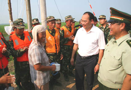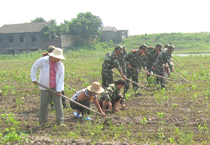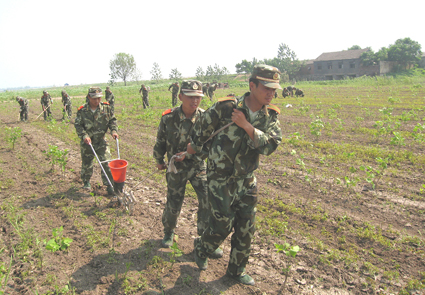 10余天来,武警官兵风里来雨里去,战高温斗酷暑,抢筑挡水子堤、日夜巡堤查险、抽空清理环境等----他们的英勇善战,真心为民,着实让每一个农场人感动和敬佩。今天上午,武警安徽省总队直属支队50余名官兵又不顾炎热,来到洪水刚刚退去的大田,挥汗如雨,忘我劳动,帮助职工中耕锄草、补种庄稼--以此度过第八十个建军节,使节日更加充实而富有意义!正如直属支队副政委石世权所说:今年的建军节我们是和老乡在田间度过的,归队以后,我们可以自豪地告诉战友!