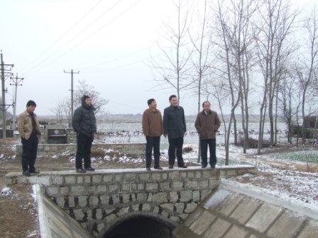 专家组一行在场长、党委书记杨俊宇及项目负责人的陪同下,冒着风雪现场查验了2006年土地治理项目的各项工程建设情况,并听取了项目工程的建设情况汇报。