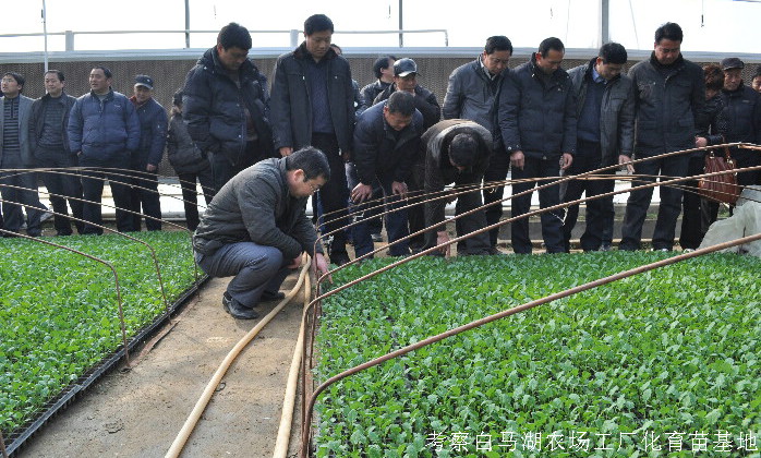 在弶港农场,王亦勤董事长向潘村湖农场党员代表详细介绍了农场场情,特别是农业经营体制实行模拟股份制改革,大力发展规模化、标准化、产业化经营的成功经验。随后党员代表们实地参观考察了高效作物园区和蛋鸡养殖基地。在地处淮安市楚州区的白马湖农场,滕金平场长介绍了农场经济社会发展情况,并陪同参观考察了种子公司和蔬菜生产基地及加工中心。