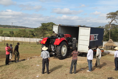 安徽农垦投资津巴布韦农业合作开发项目首批物资共计29个集装箱,此次运抵的有16个,物资包括拖拉机、播种机、深松犁、打药机、拖车等农机具及配件。集装箱运抵后,皖津公司董事长、总经理韩大鸣周密部署、现场指挥,全体员工各就各岗、密切协作,从开箱、出柜到进库,整个卸箱过程井然有序、一气呵成,赢得了津方人员的赞叹:中国人能干事、会干事、干实事。