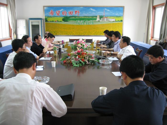 今年初,安庆市人民政府大力倡导市直部门与少数民族地区进行对口扶贫活动,市民委当“红娘”,市农委、科技局、商务局、地税局四部门与三益回民分场“结亲”。4月上中旬,这四个部门负责人分别下乡“认亲”,皖河农场及三益回民分场也及时到城里“串亲戚”。最后,大家定下5月6号这个日子相聚到一起,五方会谈,商量对口扶贫方案。