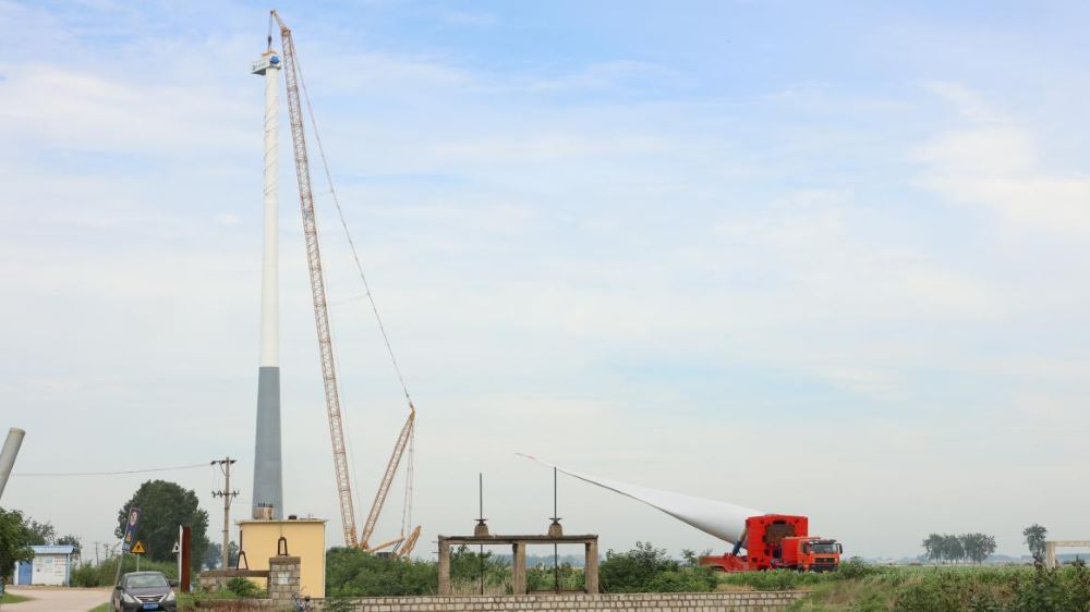 7月23日,龙亢农场公司自发自用分散式风电项目正在进行风机叶片吊装工作和升压站建设工作。目前,该项目已完成1、2、3、4、5、7机位土建工程和4、5机位混塔吊装工作,预计7月底完成总进度的70%。
