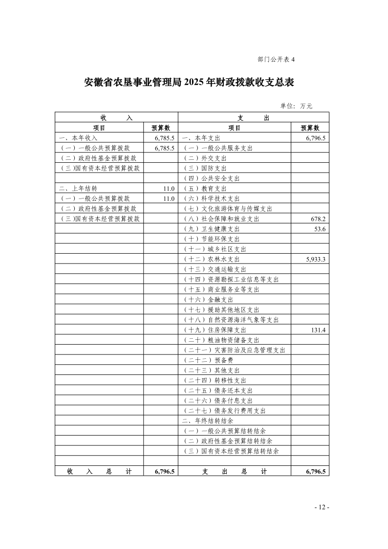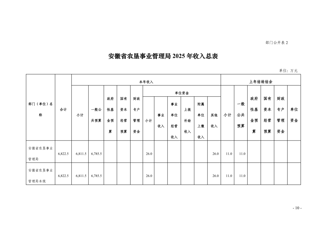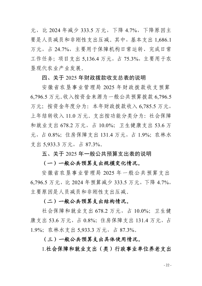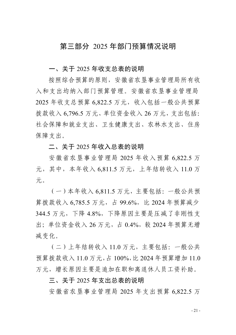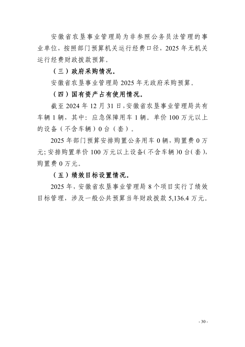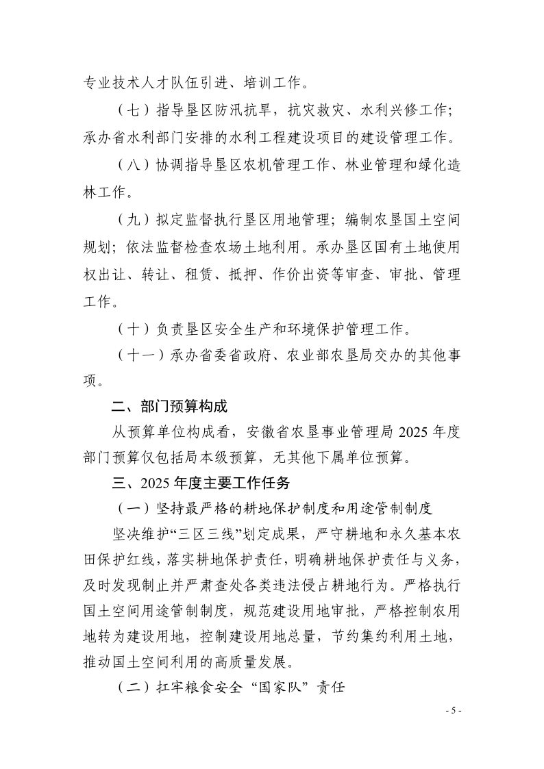 安徽省农垦事业管理局2025年度项目支出绩效目标