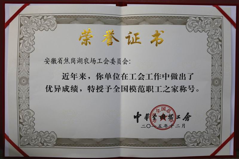近年来,安徽农垦焦岗湖农场在工会工作中做出了优异成绩,在中华全国总工会近期开展的基层模范组织评选中,荣获“全国模范职工之家”称号。(刘慧君)