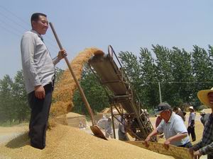 龙亢农场实行统一供优质品种、农技措施服务、田 间管理到位,全场小麦喜获好收成,平均亩产达4 40公斤。(图为家庭农场小麦丰收喜悦场面) 党群部:王戴群