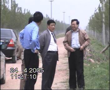 维骥同志(右二)在农业综合开发区地头查看小麦