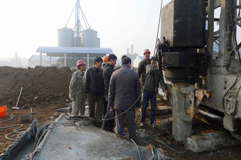 1月26日上午,安徽寿西湖农场粮食生产加工扩建项目开工建设,工程指挥部技术人员现场检测了基桩的直径、深度等指标数据,顺利打下了烘干机房基础第一桩。