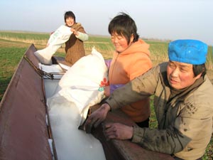 2月20日下午,潘村湖农场五分场职工涂廷宝正和 家人一起给播肥机填装化肥,他们将在傍晚前完成 50亩责任田的施肥作业.连日来,该场1000多个职工 家庭农场抓住天气晴好的有利时机,在场农技部门 指导下,施行机械追施小麦苗肥作业.到20日下午, 全场已经播施小麦苗肥近3万亩,约占种植面积的 90%%,为午季丰收奠定了好的基础.(杨登宏摄)