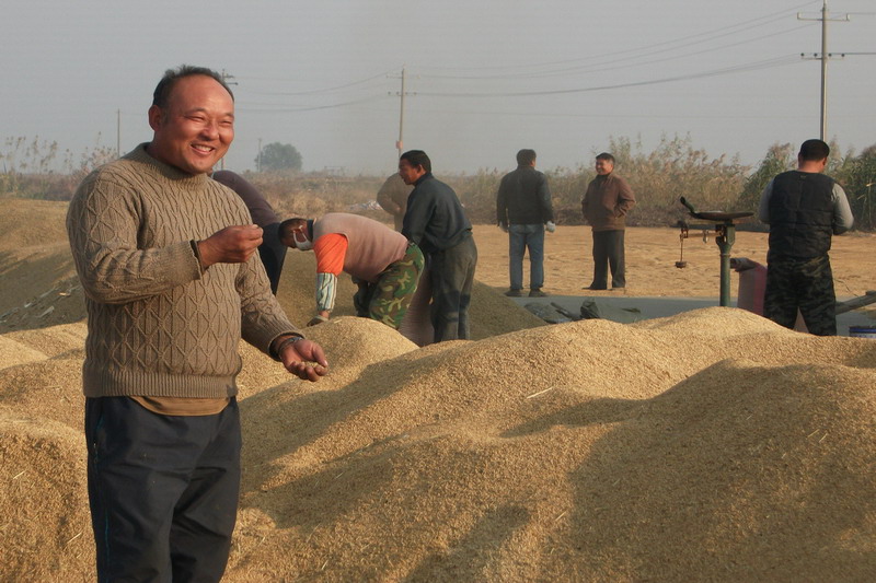 晒场是展示丰收成果的现场——稻谷堆成小山似的,犹如金山银山。天刚亮,两辆汽车停在场边收购稻谷,工作人员一边测水分,一边过磅上车。笔者饶有兴趣地问种植户,今年产量咋样?老张磕着稻籽,露出两颗门牙,不无得意地说:“轻巧说每亩有1200多斤,价格也很可观”。大家都笑了,这笑声发自职工的内心,这笑声流露出他们对党的富民政策真诚地感激。