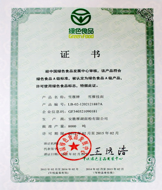 近日,安徽农垦雁湖面粉有限公司技术中心被蚌埠市经信委等七部门评审认定为市级企业技术中心。这将为雁湖公司扩大生产经营规模、提升产品附加值提供了有效保障。与此同时,该公司生产的雁湖牌特级小麦粉、特一小麦粉和雪雁牌雪雁挂面、龙须面、高筋面、玉带面、鸡蛋面、荞麦面、绿豆面9个系列产品,通过中国绿色食品发展中心审核续展,认定为A级绿色食品。